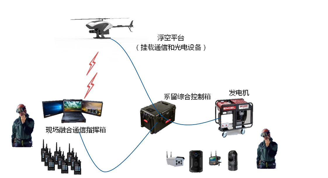 浮空實景指揮平臺主要由警用無人機、系留綜合控制箱、系留線纜、通信和光電設備、現場融合通信指揮箱、實景指揮系統、發電機七部分組成。 產品詳情 浮空實景指揮平臺主要由警用無人機、系留綜合控制箱、系留線纜、通信和光電設備、現場融合通信指揮箱、實景指揮系統、發電機七部分組成。 浮空實景指揮平臺按照空中部分和地面部分又可劃分為如下兩部分: 空中部分:警用無人機浮空平臺(含掛載通信和光電設備)、系留線纜 地面部分:系留綜合控制箱、現場融合通信指揮箱(含實景指揮系統)、發電機、單兵、監控攝像頭等 ★ 警用無人機發展歷程 ★ 2014年▼ 無人機被納入警用航空器管理范疇。 2015年▼ 相關文件出臺:《關于進一步加強公安機關視頻圖像信息應用工作的意見》,明確將無人機設備納入移動監控體系。 當年全國警用無人機達到約500架。 2017年▼ 中新社鄭州9月17日,據警用航空管理相關部門負責人表示,執法機構配備各型無人駕駛航空器4000架,共有2000余名無人駕駛航空器駕駛員。 發布《警用無人駕駛航空器系統》標準,填補了警用無人機相關法律法規的空白。 2018年▼ 先后制定下發了《警用無人駕駛航空器管理暫行規定》、《警用無人駕駛航空器登記管理辦法(試行)》和《警用無人駕駛航空器駕駛員培訓及執照管理辦法(試行)》等規章制度,2018年警用無人機達到7000架。 2019年▼ 省部級主要領導干部專題研討會議上,無人機正式列入國家科技戰略體系中。 ★ 國內警用無人機新動向與啟示 ★ [部分地區執法機構開始使用更高性能無人機] 近兩年來,開始有單位開始使用“超視距”的高性能無人機,用于執行更復雜空域、更艱巨的任務。 尤其是在使用環境復雜:海邊、高山、高海拔、邊境長、高速公路等。 ★ 創新領先采用的新科技 ★ [警用無人直升機] ★ 機載4G/5G數據鏈技術 ★ 通過4G/5G傳輸,在有網絡覆蓋范圍內信號不受距離限制,且不受遮擋,有效保障任務通訊。 一架飛行器反饋的實拍畫面,可以共享分發到多個指揮中心。 指揮中心也可調取多架飛行器拍攝的實時影像同屏顯示,比如在交通管理中,派出多架飛行器到各個擁堵點上空盤旋,同時獲取各路段的一手現場資料,以對現場進行有效處置。 ★ 新型攝像設備結合AI視覺技術 ★ 可見光變焦鏡頭能捕捉500米外的地物細節,進行人臉識別、車牌識別,輔助追蹤和標記可疑目標。 飛行器在上空采集的實時行車數據返回云端,遇到可疑情況時,監控系統可調取車輛信息進行比對。 夜間監控,可以通過微光夜視儀,擴展在低照度下的顯像能力,加激光補光后,還可看清超低照度下的夜間環境,獲取黑白或全彩的夜視影像。 紅外熱像儀能根據物體輻射的電磁波探測紅外能量(熱,最終生成帶溫度值的熱圖像,以分辨不同物體。 ★ 3D建模快速成像與AR融合指揮平臺 ★ 掛載激光雷達、傾斜相機、多光譜儀等光電設備,對任務區域采集一手全景影像資料。后期通過3D建模軟件系統,快速重建實景。 綜合飛行器視角、全城各路段攝像頭、小區監控器等影像數據,搭建全面的監控體系。