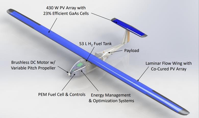 該實(shí)驗(yàn)室4月14日表示,這架電動(dòng)無(wú)人機(jī)由氫燃料電池和機(jī)翼上的太陽(yáng)能電池板提供動(dòng)力,并使用了能量收集技術(shù),如利用熱上升氣流飛行。演示活動(dòng)在馬里蘭州的阿伯丁試驗(yàn)場(chǎng)(APG)進(jìn)行。