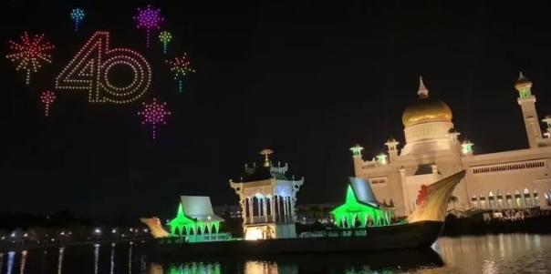 2024年3月,中國(guó)無(wú)人機(jī)表演團(tuán)隊(duì)遠(yuǎn)赴文萊配合慶祝文萊國(guó)慶日40周年紀(jì)念,一場(chǎng)盛大的無(wú)人機(jī)表演活動(dòng)在文萊首都斯里巴加灣市金禧公園上演。在阿都馬力王子、阿卜杜勒·馬丁王子的陪同下,文萊蘇丹哈吉·哈桑納爾·博爾基亞與其他皇室成員親臨現(xiàn)場(chǎng)觀看表演,共同見(jiàn)證這一歷史時(shí)刻。
