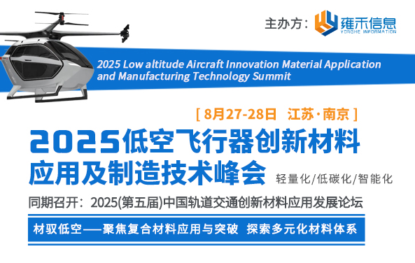 2025年8月27日-28日在南京開展“2025低空飛行器創(chuàng)新材料應用及制造技術峰會”。活動將邀請低空飛行器上下游配套企業(yè),復合材料/金屬材料企業(yè)、膠黏劑/鉚接企業(yè)、增材制造企業(yè)、減震降噪企業(yè)、高校及科研院所檢測機構、設備生產(chǎn)企業(yè)齊聚南京共話低空未來。