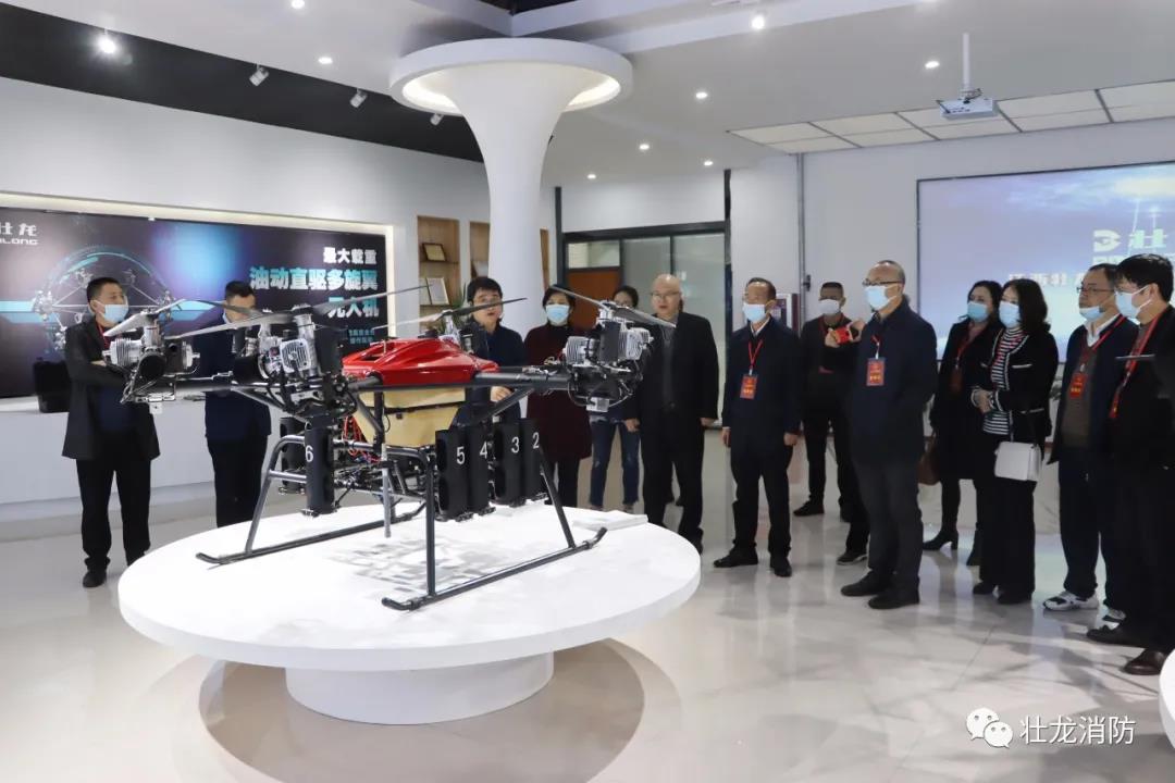 在我公司副總經理李群和常建陪同下王主任實地察看了壯龍的展廳,廠房,及生產車間等基礎設施,現場觀看了壯龍無人機的飛行演示。王主任就我司在消防等新領域研發所取得業績給予了肯定,并對壯龍的整體規劃提出了重要的指導意見。