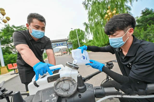 用于消殺的無人機原本專用于農林植保,比普通無人機體格都大,需要多人協同配合、共同作業。