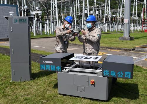 國網福州供電公司巡檢人員在福州220千伏高岐變電站內對無人機機巢進行日常檢查維護